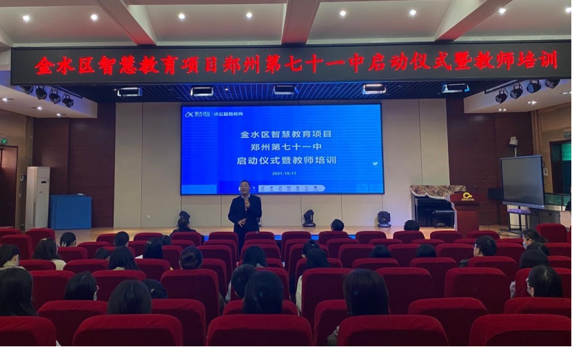 2021年10月12日在郑州市第七十一中报告厅举办了金水区智慧教育项目郑州市第七十一中学启动仪式暨教师培训活动,校长徐建志,副校长周德刚、赵全发、教务主任王洁及相关教师出席了本次活动。