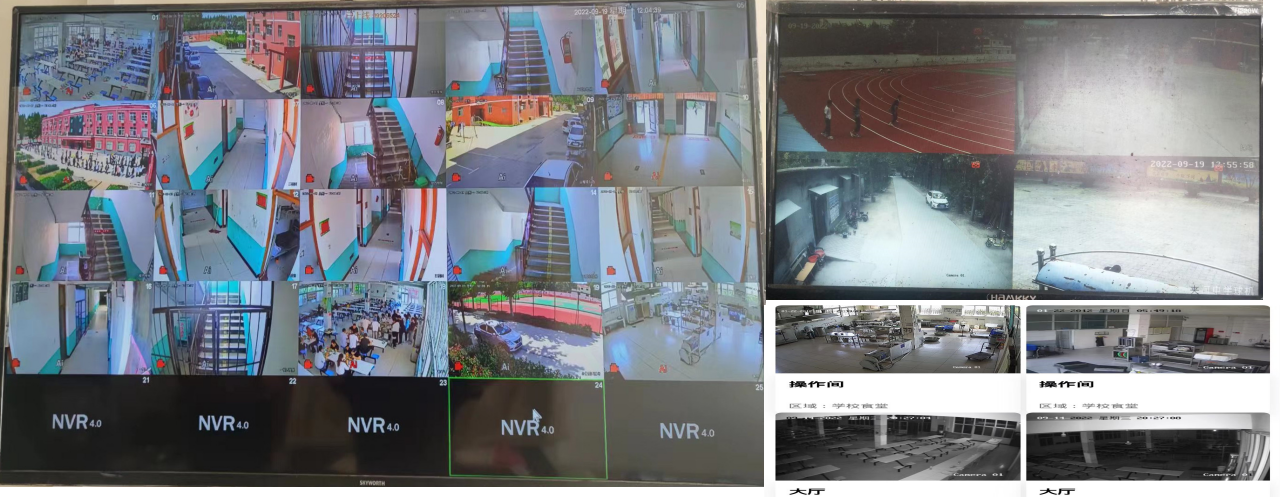 数字监控系统分为教室监控、教学楼走廊、宿舍楼、操场、室外、餐厅,实现校园监控全覆盖,确保安全无死角。