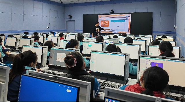 本次直播课的内容是四年级下册第一课《有趣的图形化编程》,职老师面对的不止是本校的学生,还有卫滨区近20所小学的四年级学生。课堂上,职老师为班级学生讲解编程在生活中的运用,指导学生进行编程练习。其他小学的学生通过“智慧教育云平台”跟着职老师一同学习,同学们沉浸其中,兴趣盎然。