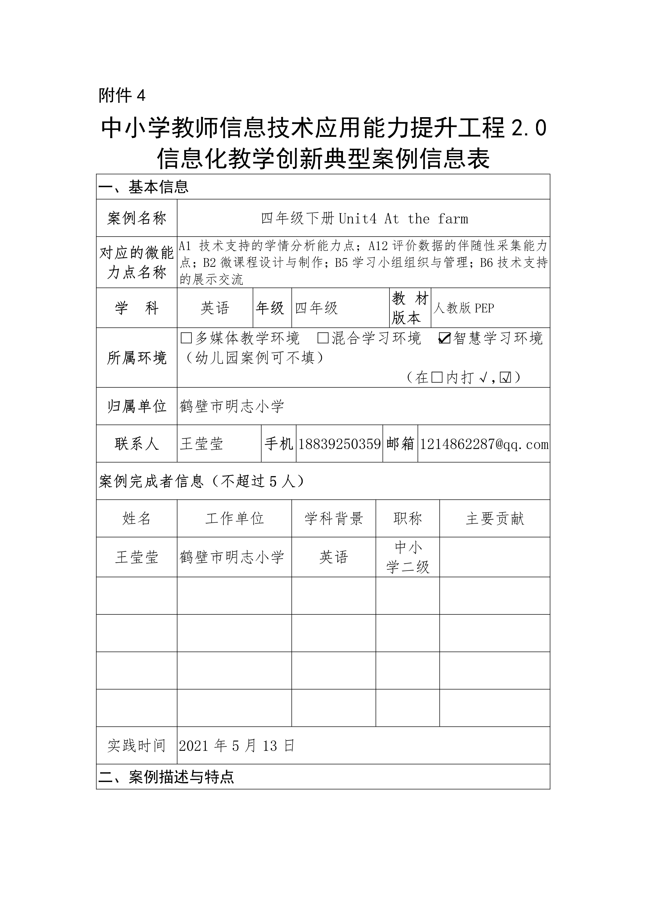 中小学教师信息技术应用能力提升工程2.0信息化教学创新典型案例信息表