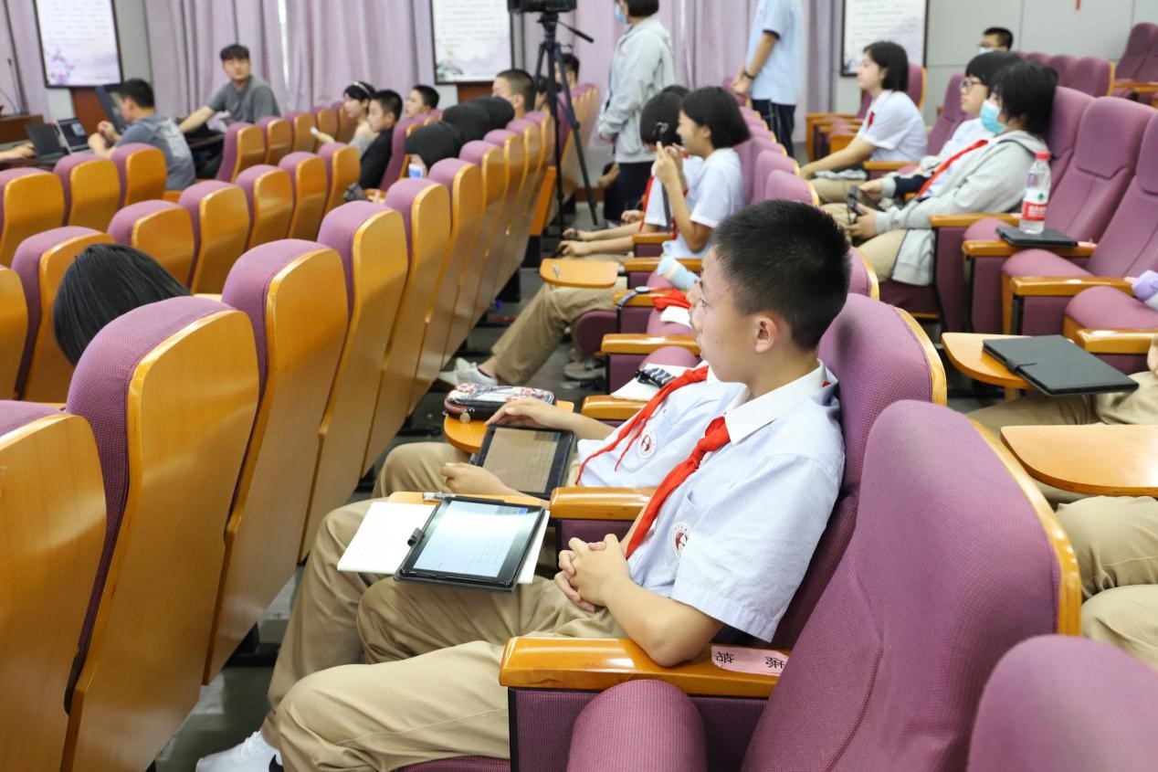 本次朗诵会由郑州市第八中学全体七年级学生参与,在朗诵会前,七年级语文组老师利用智慧课堂发起朗诵作业,学生通过学生平板提交朗诵作品,利用人工智能评分以及语文老师评分结合的方式选出一组学生最终参与决赛。