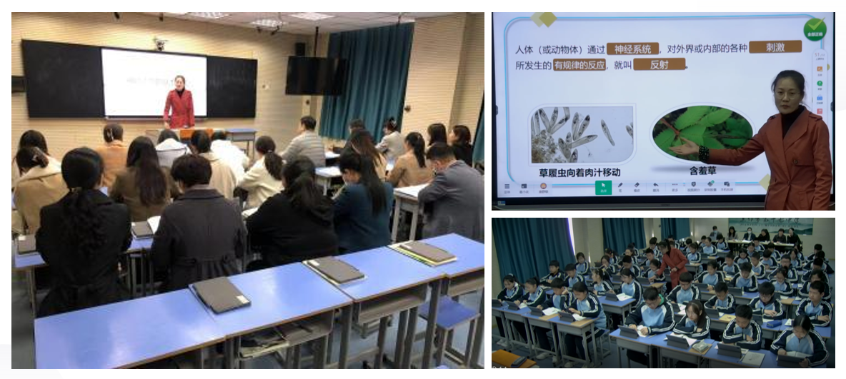 科技促进发展,智慧引领前行。智慧课堂展示活动以现场观摩课、分享应用心得和分学科集中研讨的形式进行。我校七位教师精心准备,大胆尝试,勇于突破,呈现了七节精彩纷呈的智慧课,探索出了许多高效的教学方式,充分展现了我校教师扎实的教育基本功和过硬的教学水平。