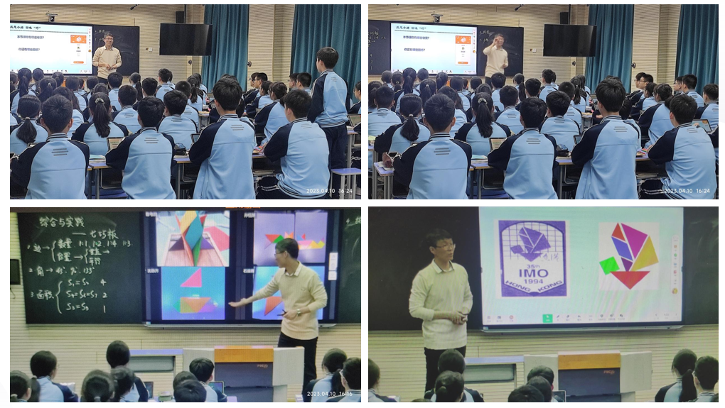 王勇老师执教的《有趣的七巧板》充分利用了多媒体技术,通过图片、视频及动画,运用几何画板和希沃白板软件中的传屏,智能答题,抢答活动,随机点名等功能,有效的调动学生学习的积极性和主动性,使课堂教学情景化、直观化,生动活泼,趣意盎然。把现代信息技术作为学生学习数学和解决问题的强有力工具,使学生乐意投入到现实的、探索性的教学活动中去。