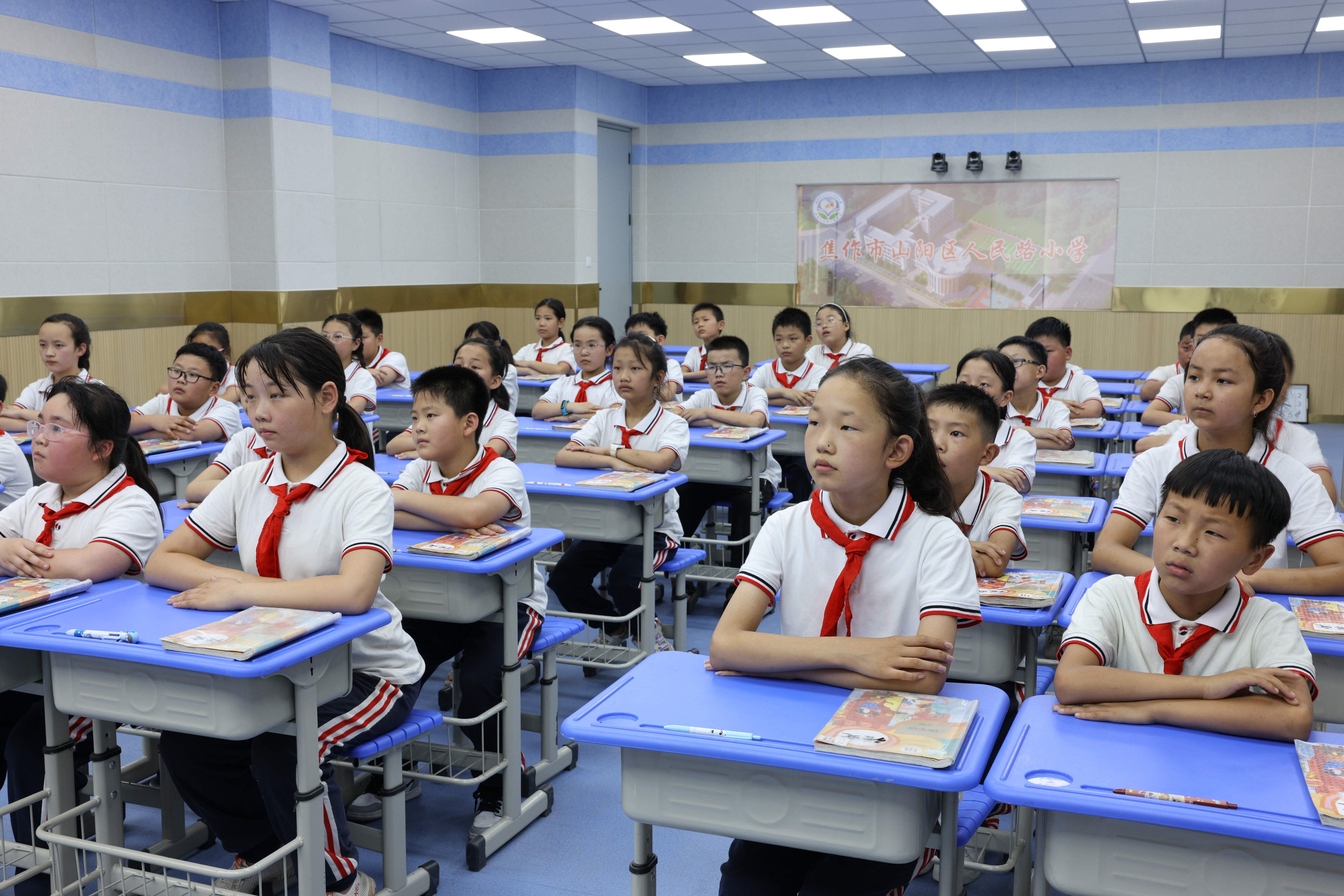 “老师,听说学校有一个充满高科技的教室,是真的吗?”“那个教室的课桌凳和我们的不一样是吗?”“老师,你什么时候能带我们去那里上课呢?”……近日,山阳区人民路小学现代化、全自动高清录播教室全面完成安装和调试,并正式投入使用。