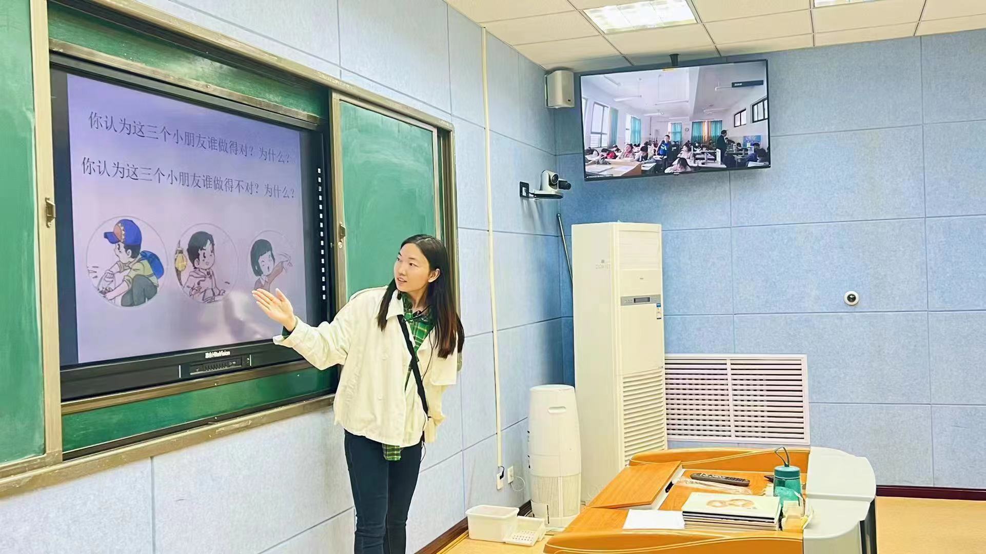 刘娜娜老师执教的部编版一年级下册语文《树和喜鹊》,这是一篇童话故事,课文用生动细腻的笔触描写了树和喜鹊由孤单到快乐的生活经历,告诉孩子们有了邻居,有了朋友,大家一同玩耍,一同游戏,才能享受快乐的生活。教学中,刘老师抓住一年级学生的年龄特点,注重朗读教学,不仅朗读形式多样化,而且循循善诱地指导学生读出情感,深化文本主题。赵琼老师执教的是三年级音乐下册《我是小音乐家》一课,赵老师通过设置情景带领学生参加音乐会,认识三位小音乐家为主线,从乐器模仿到创编歌词,以多种形式激发学生学习的积极性,增强学生的创新能力,让学生在和谐、轻松、愉快的氛围中学习、感受音乐的魅力。