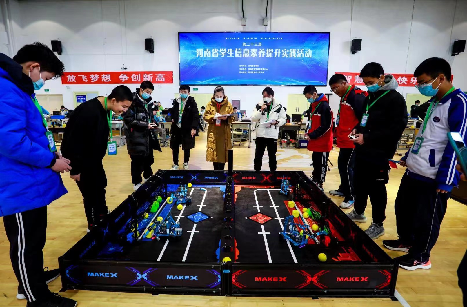 本次活动以“实践、探索、创新”为主题,分为线上赛和现场赛两个部分,比赛设人工智能-超变战场、MakeX机器人挑战赛、人工智能-创意应用、创意智造等14个赛项,来自河南省各地的525支参赛代表队、1000余名优秀参赛队员根据比赛现场、轨迹图、任务,展开了一场智慧与技能的比拼和较量。活动的开展对推动河南省中小学信息素养提升,鼓励、吸引更多的青少年在电子、信息、自动控制等领域进行学习、探索和实践具有重要意义。