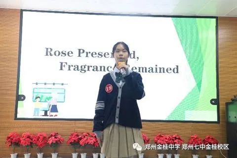忽而春风,岁月向荣,万物至此生长。杨柳风柔,海棠月淡,演讲如约而至。为锻炼口语表达能力,提高英语语言素养,学校举行了以"Roses Given, Fragrance in Hand.“为主题的英语演讲比赛。