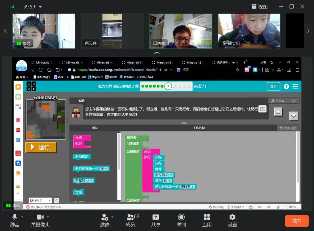 “编程一小时”(Hour of code)是非营利组织code.org发起的公益性科普活动,迄今为止,全球已有180多个国家数十亿青少年参与此项活动。12月的第一周,郑州七中金桂校区七年级600多名学生也加入到这个行列,在信息技术“云”课堂上参加“编程一小时”活动。