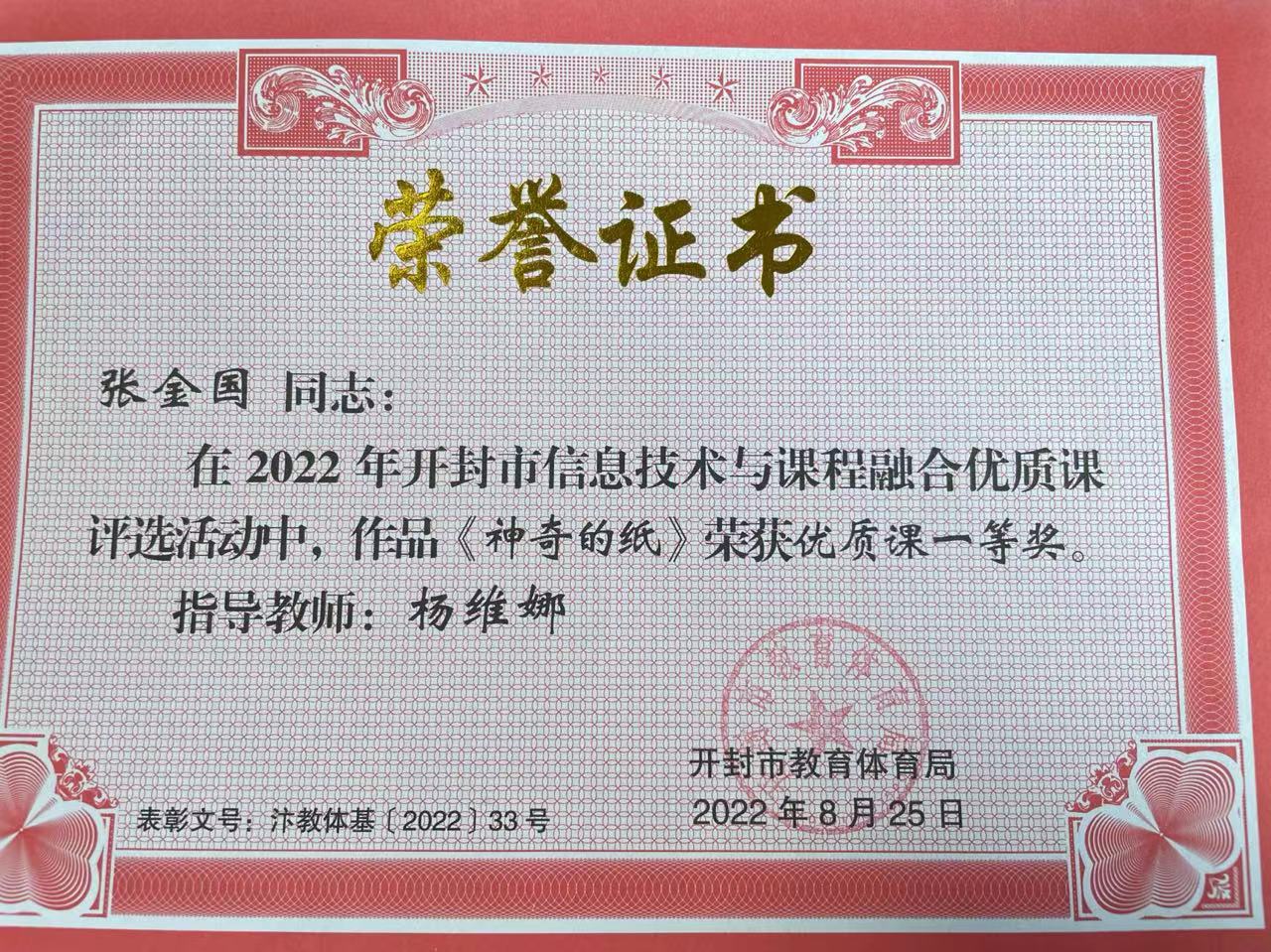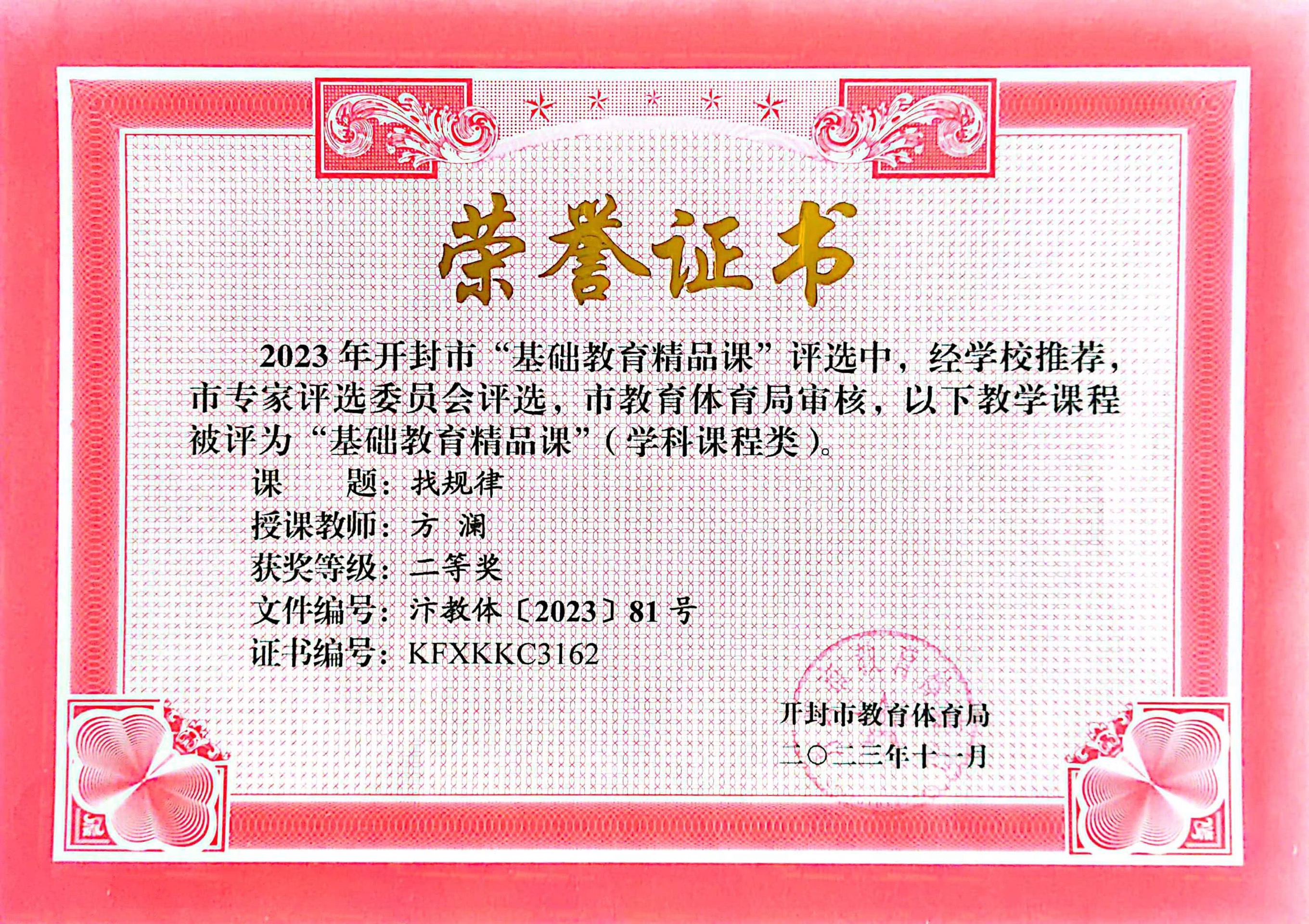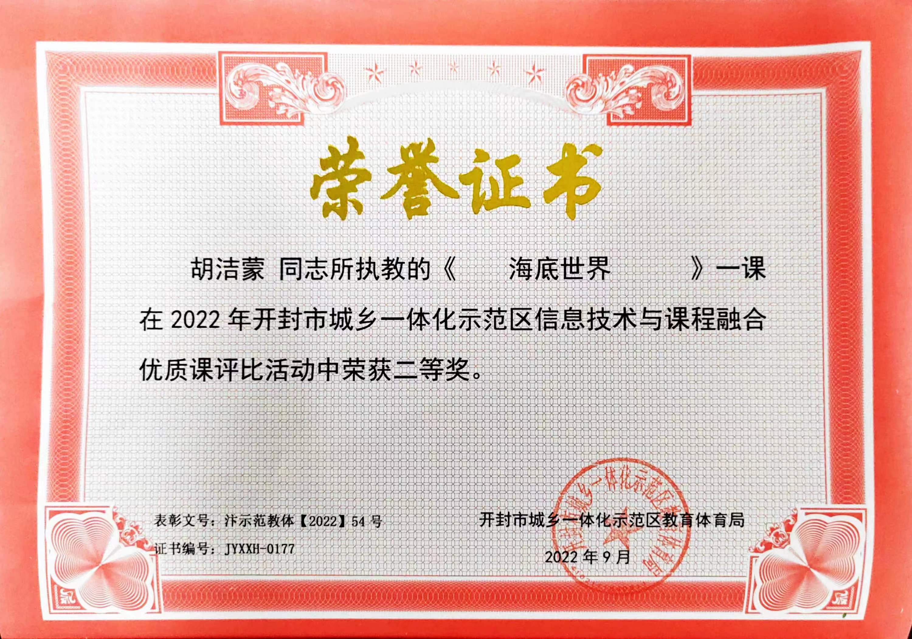 我校教师在信息技术教育中积极探索创新,并取得优异成绩。在2021年度我校被河南省教育厅评为“河南省中小学数字校园标杆校”;张金国同志在2022年度河南省信息技术与课程融合优质课《神奇的纸》评选中荣获三等奖、在开封市信息技术与课程融合优质课中荣获一等奖;卢志华同志在2023年开封市信息技术与课程融合优质课评选活动中,作品《鹿角和鹿腿》荣获二等奖;孔婷婷同志在2022年开封市信息技术与课程融合优质课《杨氏之子》评选中荣获二等奖;胡洁蒙同志在2022年开封市城乡一体化示范区信息技术与课程融合优质课《海底世界》评选中荣获二等奖;魏冉同志在2021年河南省基础教育精品课《比多少》荣获一等奖、在2023年开封市教育教学信息化交流活动评选中,作品《比多少》荣获多媒体教学课件三等奖;方澜同志在2023年开封市基础教育精品课《找规律》评选中荣获二等奖。