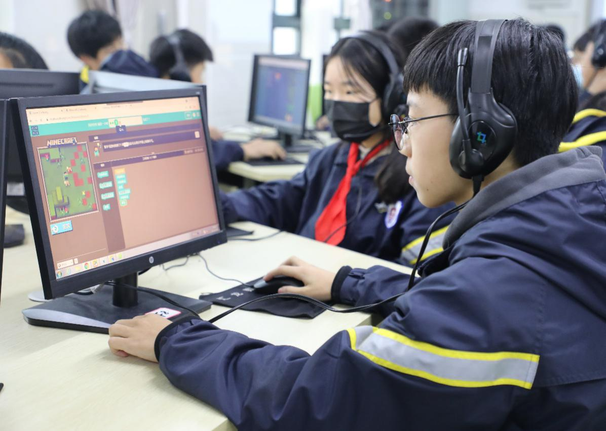 "编程一小时"由非营利组织Code.org发起,是一个介绍计算机科学的活动,旨在以游戏情景、动画、积木构建的形式揭秘编程,鼓励孩子在一个小时内完成一个项目,目前全球已有13亿人次参与。12月13日,郑州七中金桂校区组织部分七、八年级学生参加“编程一小时”活动。