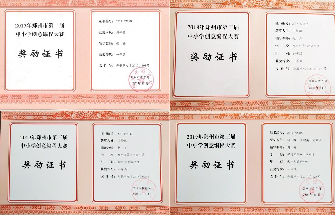 在2020年11月28日举行的郑州市第四届创意编程大赛中,我校选手再获佳绩。