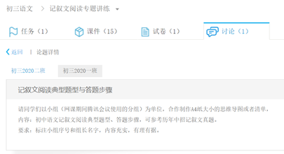 以往记叙文阅读练习一般布置在测试卷或课后习题中,学生几乎毫无准备地应试答题,效率肯定大打折扣。该模式教师会在课前发布预习任务,小组分工合作精准完成预习任务并上传平台,智能评估收集学情,教师二次备课。