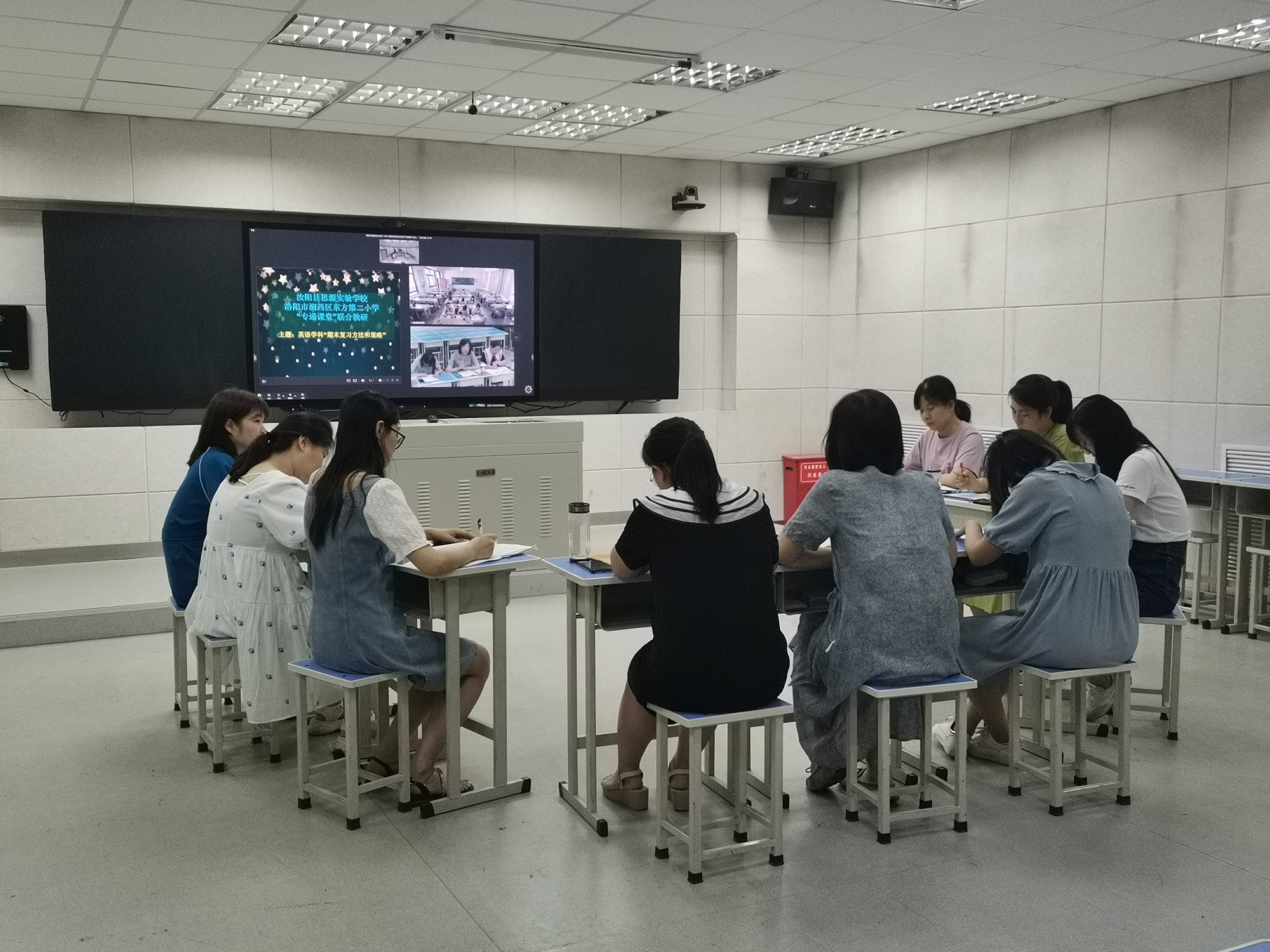 通过本次研讨活动,双方老师跨越空间的距离齐聚一堂,畅所欲言,从制定复习计划,组织教学活动,运用复习策略等方面等多个方面进行了交流。一个多小时的教研活动中,气氛热烈,老师们坦言获益良多。