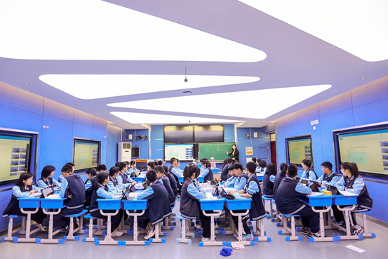 在精品课例展示环节,郑州冠军中学的老师展示了4节精彩纷呈的课程,课堂上,执教老师们灵活运用信息技术设备开展教学活动,布置课堂学习任务引导学生探索交流;学生们使用智慧学习设备进行学习,积极参与课堂互动讨论,课堂气氛活跃,给大东考察团的老师们带来了不一样的感受。