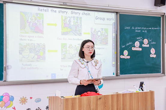 王婵老师带来了一节英语听说课《An old man tried to move the moutains》,通过学生创作剧本并进行剧情演绎,生动形象的展示了信息技术支撑下的英语互动式课堂。