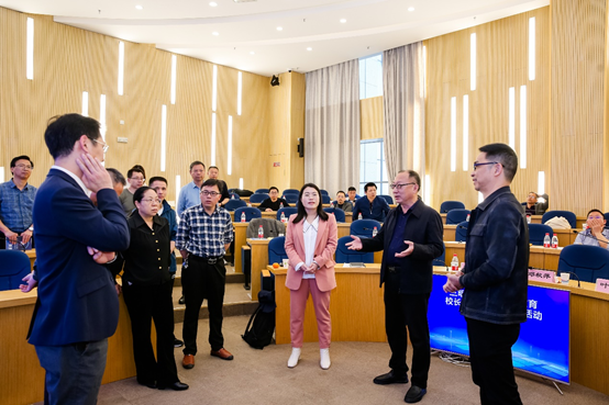 在此目标下,吴帅主任重点介绍了学校在智慧教育自主探索、全面建设、初步融合、深度应用、引领创新等阶段的具体举措。通过规范基础建设—创新管理机制—全面师生研训—系列师生活动等举措,逐步推进智慧教育建设,促进了技术与教学深度融合,营造了良好的教与学氛围,不断突破和创新教与学的应用模式,同时沉淀了丰富的校本资源和成果。吴主任精彩有效的经验分享给沙县区领导和校长带来了深刻的启发,并引发了现场热烈的反响与交流,沙县区教育局也对郑州冠军中学的智慧教育建设方法给予了高度认可。