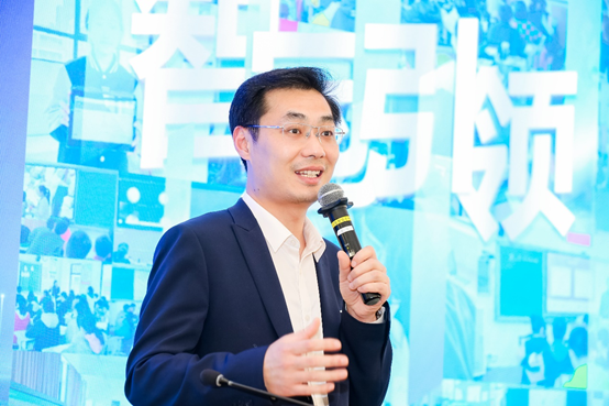 在主题讲座中,吴帅主任结合郑州冠军中学智慧教育建设经验,从“为什么要进行智慧校园建设”“怎么推进智慧校园建设”和“智慧校园建设带来了哪些改变”三个方面出发,详细分享了智慧教育背景下的实践探索、如何探索智慧教育发展新路径、如何营造师生成长与学习的氛围、如何打造智慧教育模式以及技术驱动下未来学校的发展方向。吴帅主任表示,作为郑州市金水区智慧教育项目的重点学校,近两年来,郑州冠军中学将推进落实智慧教育项目作为学校重要任务,致力于通过AI赋能,提升师生的信息素养,全力构建以“智冠管理提效率、智冠课堂促融合、智冠赋能助提升、智冠教研共成长、智冠学习树新风”为一体的“五维一核心”智冠教育新体系。