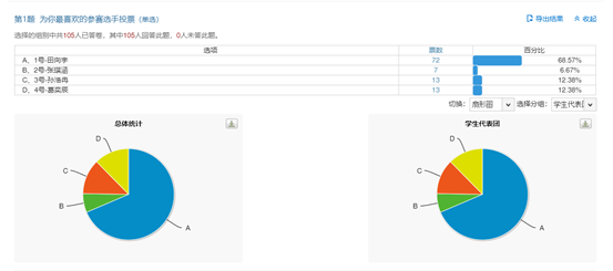 每位选手朗诵比赛结束后,评委老师通过教师平板给学生进行评价,平台实时记录,并对孩子们的优秀表现给予精彩点评,同时现场和场外的同学都可以通过手中的平板进行投票,选出自己心中优秀的朗诵者,投票结果实时呈现,体现了科技的魅力。