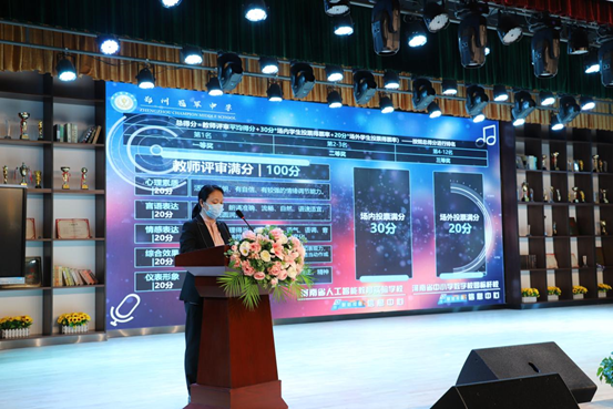 经过场内外观众投票和评审团评选,通过AI技术手段的助力,参赛选手获奖结果实时呈现,最终,经过激烈的角逐,田向宇同学获得一等奖,郭顺琪、李雨琳煊获得二等奖,其余同学获得三等奖,由学校领导为获奖学生颁发荣誉证书及奖品,对选手们的精彩表现给予肯定。