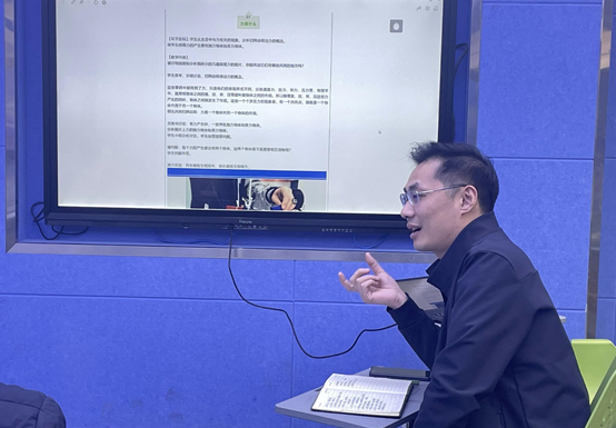 教师们观看完课例后,由学科组教师主导针对课程内容展开深度交流探讨,从教学内容、信息技术融合应用、课程亮点、课程不足、个人疑惑以及优化建议等多方面展开探讨说明。