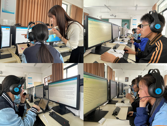 本次大赛共分为三轮,初赛海选、复赛入围和决赛比拼。初赛海选阶段,各班英语教师通过“中学作业”布置 “英语听说专练”作业, 班级学生利用课余时间完成朗读,根据最终系统评测结果与学生日常综合表现,每个班级前10名入围复赛。