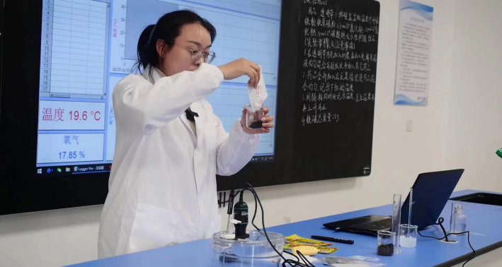 在创新实验室的有力支撑下,化学教研组完成了系列公开课的教学工作。张红静老师展示了传感器在化学上的应用,与同学一起探究《暖贴的设计与制作》。宋向飞老师以传统实验酸碱中和滴定为切入点,利用数字化实验仪器,与学生一起探索实验奥秘。后续,化学教研组将结合数字化实验室进一步探究有效利用数字化资源的方式,丰富实验课堂教学。
