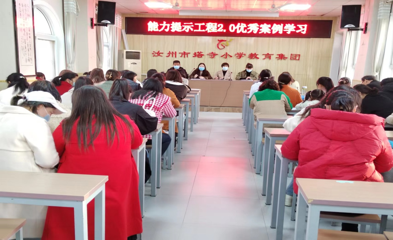 塔寺小学教育集团于3月28日,组织全体教师进行“能力提升工程2.0优秀案例”集中学习,活动由教研处组织,参加活动的领导有书记赵二风、主管教学的副校长夏丹丹、主管教研的副校长许姗姗。
