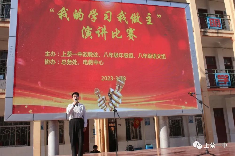 3月13日下午,上蔡一中八年级举行了“我的学习我做主”演讲比赛。