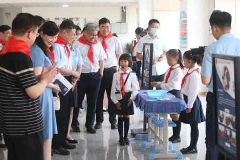 会后,与会领导、嘉宾在焦校长引导下一起参观纬五路第二小学航空航天展和科普课程展示,参展中学生缜密的科学思维和课程形式的丰富和多样让在场的领导和嘉宾赞不绝口。