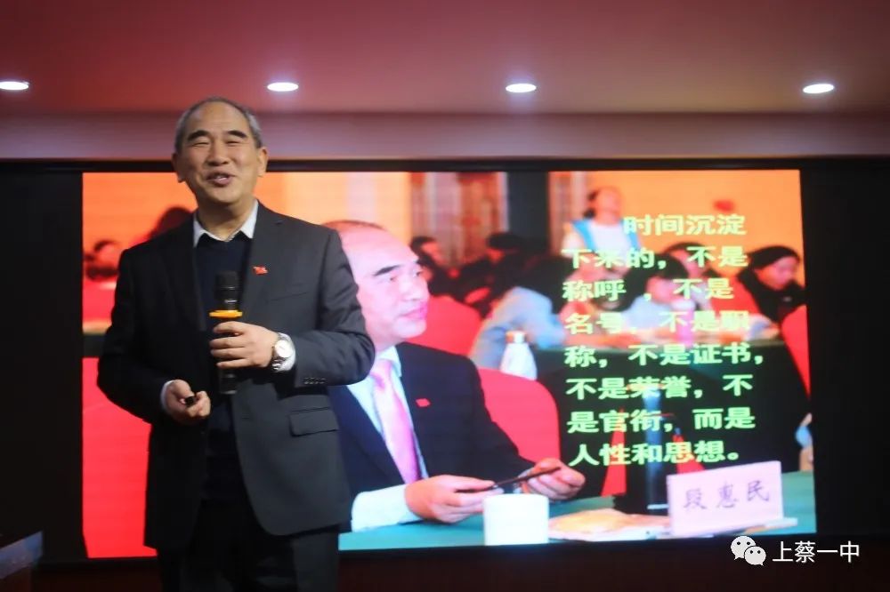 元月31日下午,段惠民老师幽默风趣的讲座《遇见更好的自己》赢得了老师们的阵阵掌声。段老师以自身成长经历为切入点,分享了他从一位普通乡村教师成长为全国知名教师的奋斗历程,向大家展示了一个人民教师的丰富人生。并引经据典,用丰富有趣的教育故事和教育案例深入浅出地解读了教育工作的方法与艺术,激励老师们勤学习,善思考,多交流,勤读书,关注自我成长,进德修业,外师生活,不断提升,成为独一无二的自我。