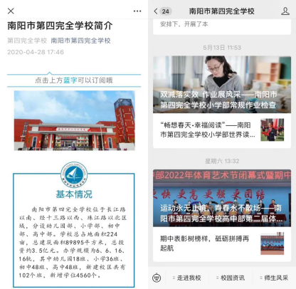 南阳市第四完全学校始建于2019年,建有教学办公楼2幢、综合楼1幢,各种功能室齐全,内部设施配备完善。现有70个教学班,目前教职员工300名,在校学生3500名。学校牢固树立“五育并举,全面发展”的办学理念,全面提高育人质量。