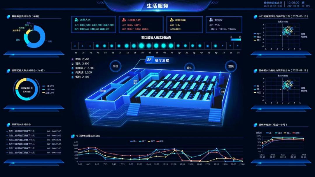 融合大数据、AI等技术打造而成的学校大脑,可以清晰地了解到学校每天的情况,如:教师如何开展教研,学生学习薄弱点在哪里,餐厅哪道菜品最受欢迎,后勤服务哪里存在安全隐患,大幅提升教育教学质量和教育管理决策水平。