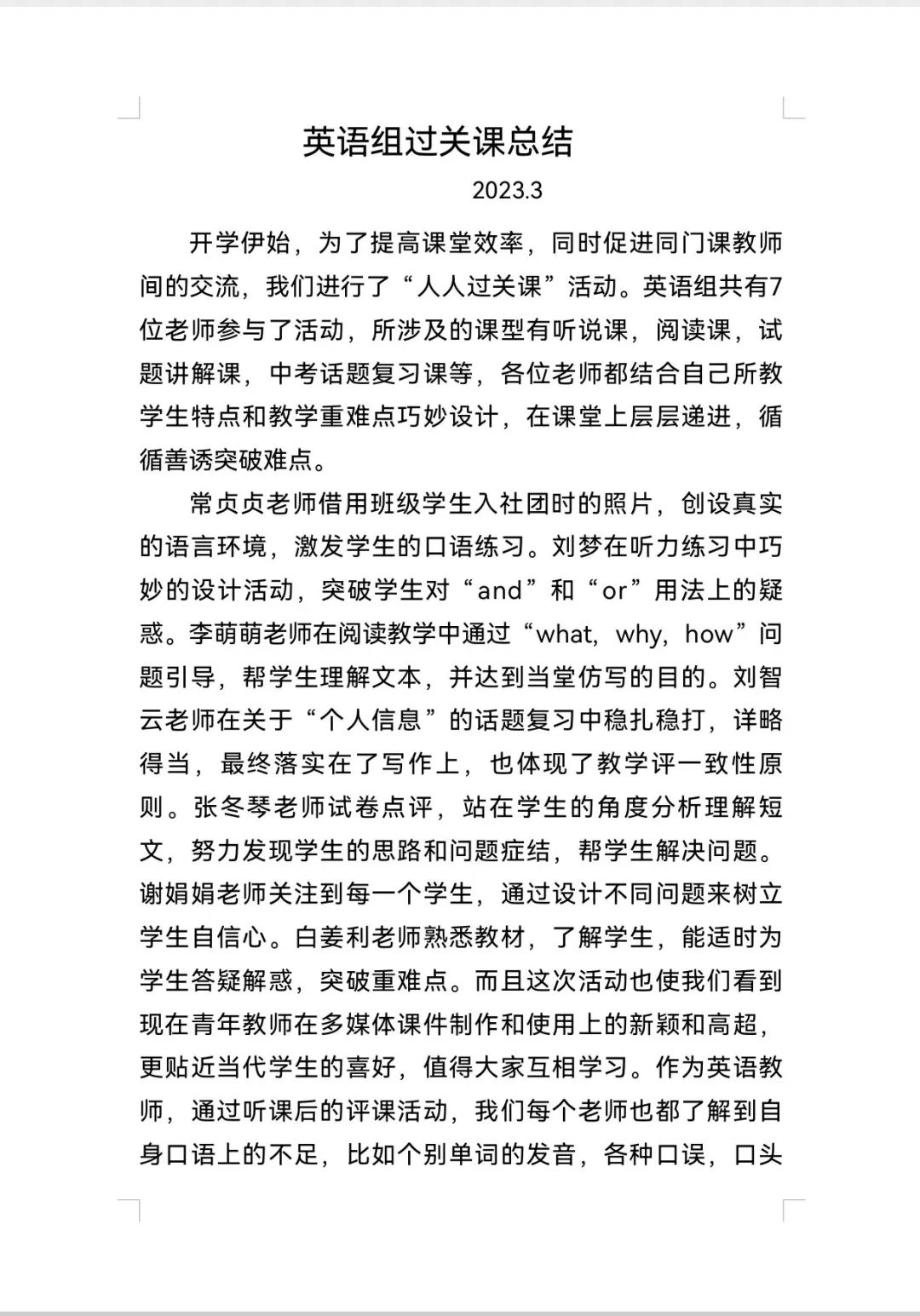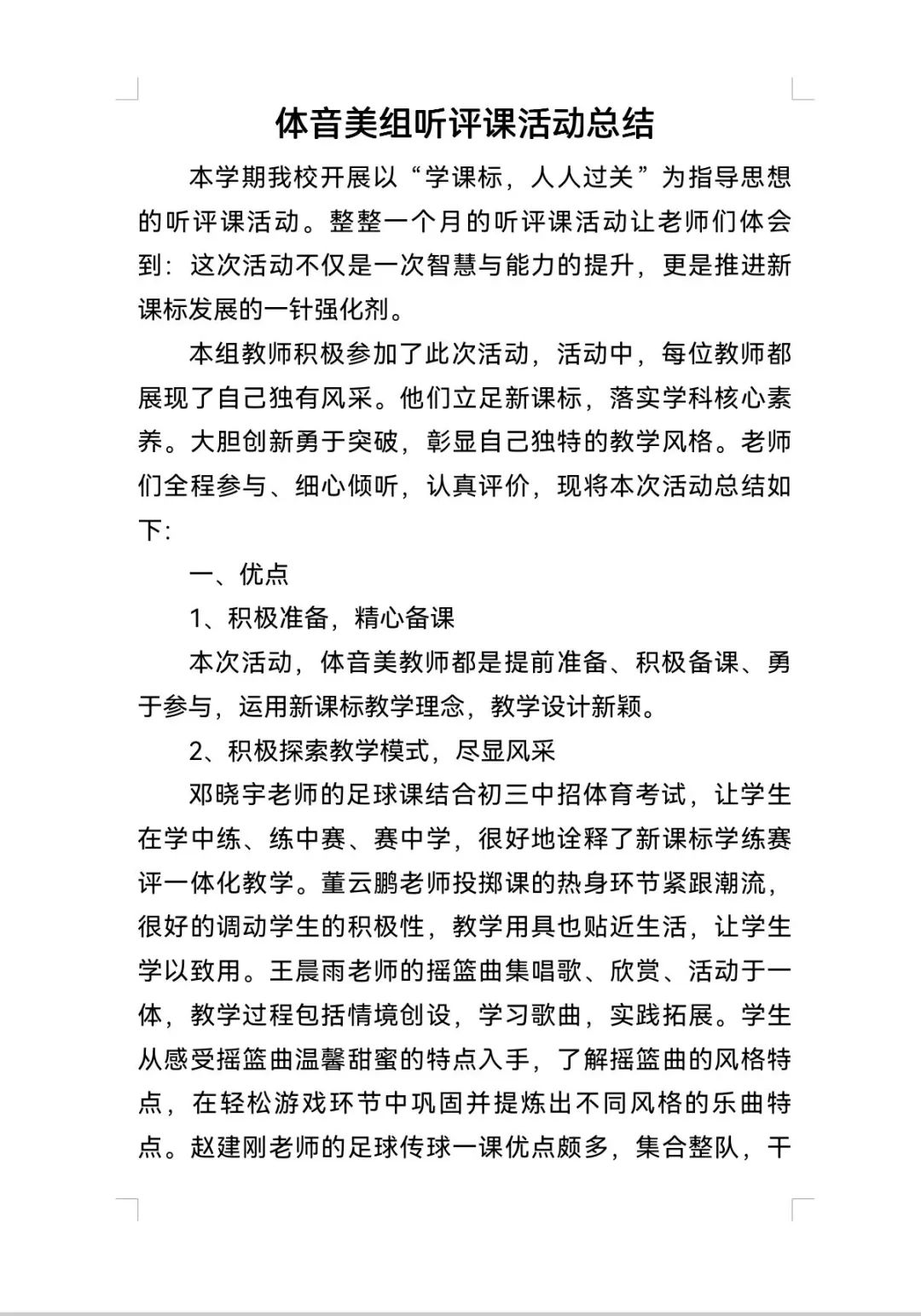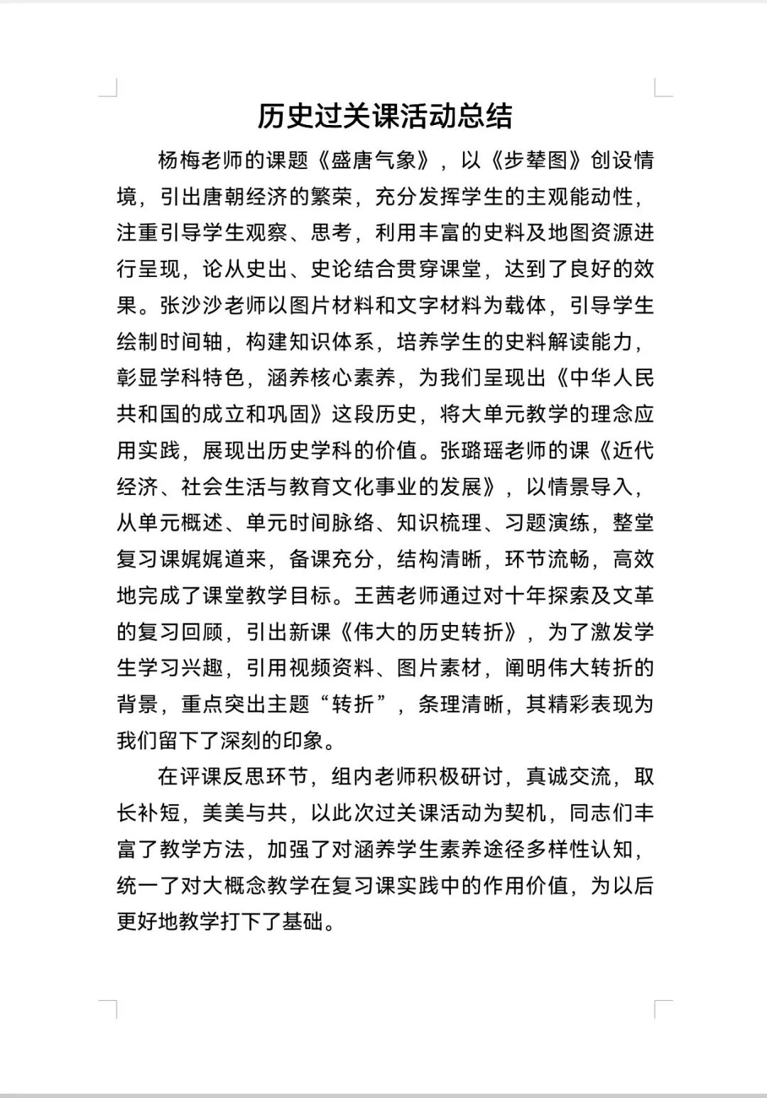 听评课结束后,各学科组长进行总结并形成文稿,用专业精神引领专业成长,不断迈进积极状态,助力各组教师的成长和发展。
