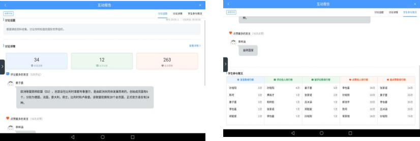 ②全员关注课堂。有的同学可能没有提前搜集资料,但是下方有点赞功能,说明他也在关注课堂,潜移默化地达成第3个目标。打破了原始课堂只有回答问题的学生在思考,部分学生思想开下差的弊端,智慧型课堂几乎每位同学都参与课堂中,有回答,有点赞认同,获得了所有学生的关注,真正地发挥其主观能动性。